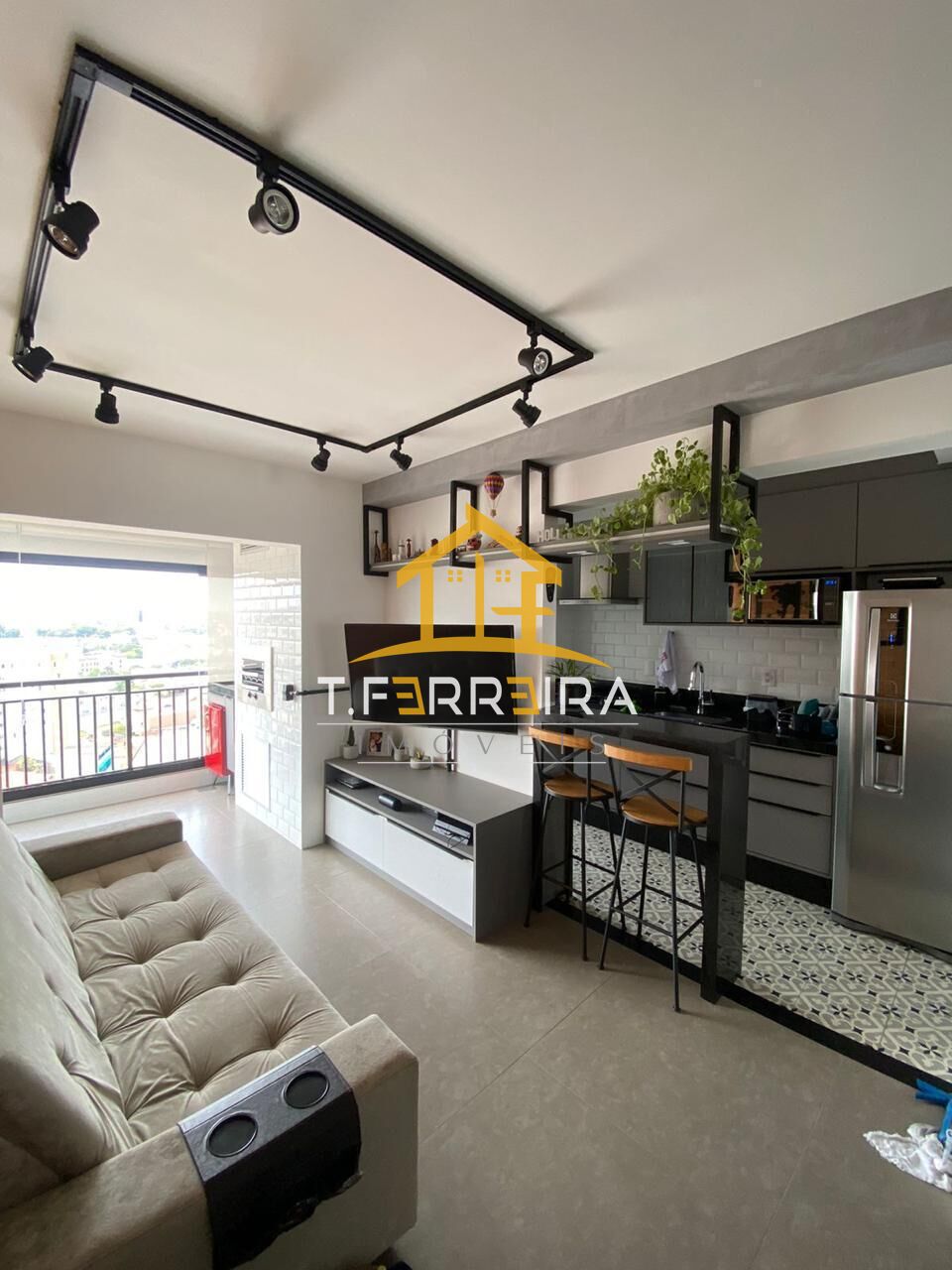 Sala com dois ambientes, 01 banheiro social, cozinha, área de serviço e Terraço Gourmet.
