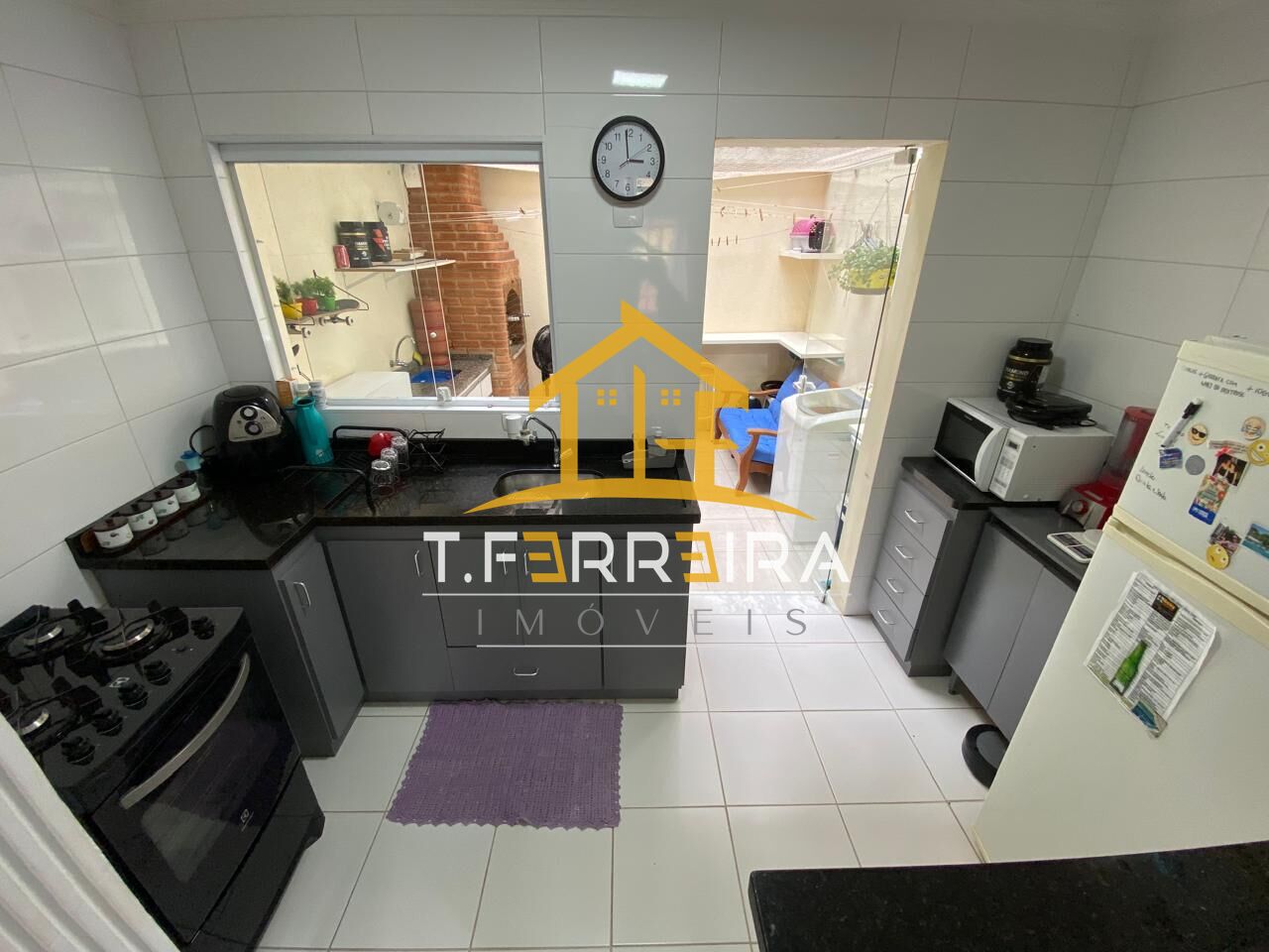 Sala com dois ambientes, cozinha americana e área de serviço/espaço gourmet com Churrasqueira.